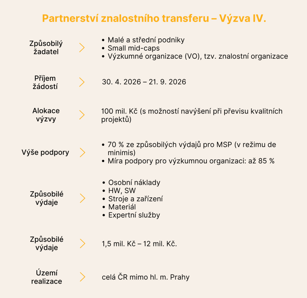 DOTAČNÍ ČMUCHAL: Partnerství znalostního transferu – Výzva IV.
